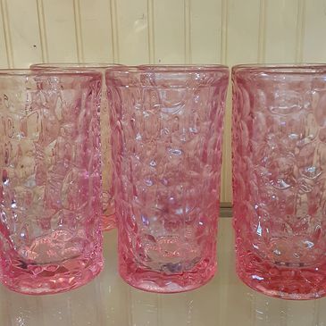 The scattered dimple design resembling pebbles in this heavy glass tumbler made it a very popular mid-century choice.